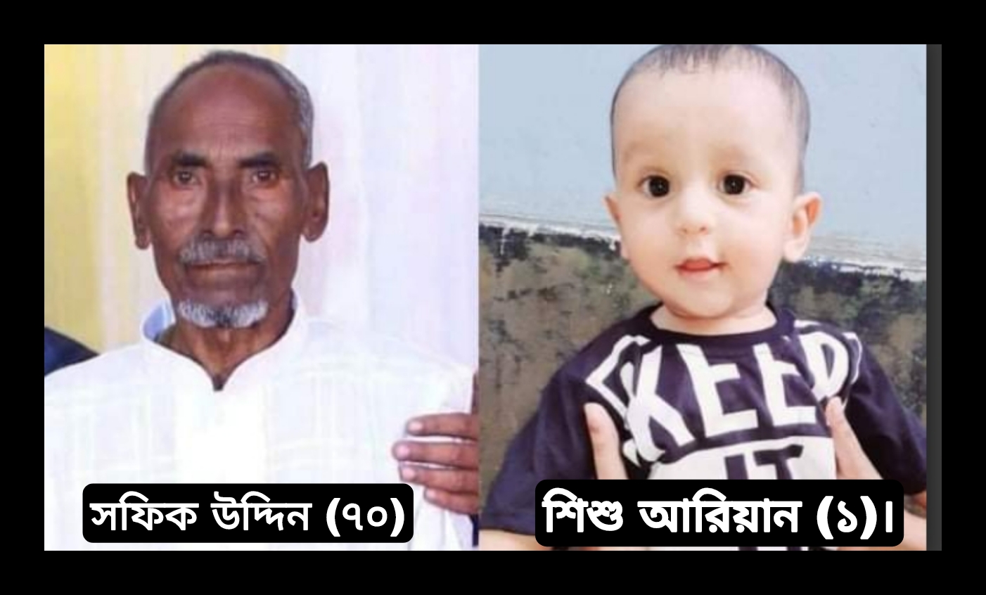 এ ঘটনায় নিহত সফিক উদ্দিনের স্ত্রী ও মেয়ে সহ শিশু আরিয়ানের মা গুরতর আহত হয়ে চিকিৎসাধীন রয়েছেন। মা’কে হাসপাতালে রেখেই দাদার পাশে শুয়ে এক খাটিয়ায় চড়ে শেষ বিদায় নিলো নিষ্পাপ শিশুটি।