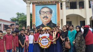 সকাল ১০টায় শান্তিগঞ্জ উপজেলা পরিষদের চত্বরে বঙ্গবন্ধুর প্রতিকৃতিতে পুষ্পস্তবক অর্পণ করেন শিক্ষক-শিক্ষার্থী ও কর্মকর্তারা। পুষ্পস্তবক অর্পণের সময় উপস্থিত ছিলেন- জয়কলস ইউনিয়ন পরিষদের চেয়ারম্যান আবদুল বাসিত সুজন, ইউপি সদস্যা তৈয়বুন নেছা, শিবপুর বেসরকারি প্রাথমিক বিদ্যালয় পরিচজলনা কমিটির সভাপতি আবদুল তাহিদ, বাংলাদেশ এক্সটেনশন এডুকেশন সার্ভিসেস (বিজ)’র সুনামগঞ্জের প্রোগ্রাম অফিসার নিলু কান্ত পাল, শিবপুর বেসরকারি প্রাথমিক বিদ্যালয়ের প্রধান শিক্ষক মো. জাহাঙ্গীর আলম, চুরখাই বেসরকারি প্রাথমিক বিদ্যালয়ের প্রধান শিক্ষক রাজীব দে, নোয়াগাঁও-২ বেসরকারি প্রাথমিক বিদ্যালয়ের প্রধান শিক্ষক শাহ আলম, ইনাতনগর বেসরকারি প্রাথমিক বিদ্যালয়ের প্রধান শিক্ষক শেলী রানী তালুকদার, চন্দ্রপুর বেসরকারি প্রাথমিক বিদ্যালয়ের প্রধান শিক্ষক বিনতী সূত্রধর, মাহমদপুর বেসরকারি প্রাথমিক বিদ্যালয়ের প্রধান শিক্ষক ঝর্না বেগম, ধলমৈশা বেসরকারি প্রাথমিক বিদ্যালয়ের প্রধান শিক্ষক পপি বেগম, সহকারি শিক্ষক আবু সুফিয়ান, সালাতুন নেছা, রুনি সূত্রধর, শিখা সূত্রধর, মিন্টু সূত্রধর, সুষমা সূত্রধর, কল্পনা সূত্রধর, ফরিদা আক্তার, আসমা বেগম, সুজিনা বেগম ও তাছলিমা বেগম।