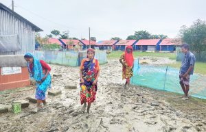 শান্তিগঞ্জে গুচ্ছগ্রামে ঘর পাওয়ার সুখ কেড়ে নিচ্ছে রাস্তার কাদা