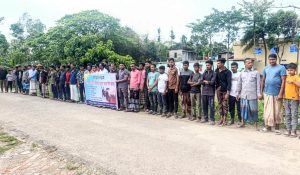 মানববন্ধনে উপস্থিত ছিলেন- জাহান মিয়া, সুমন মিয়া, জুবের আহমদ, জাহির মিয়া, শাহ জাহান মিয়া, হাবিব আহমদ রফিক, সাইফুল ইসলাম, রুমেল মিয়া, সেগুল মিয়া, মাহমদ মিয়া, সোহেল মিয়া ও হারুন মিয়াসহ আরো অনেকে।