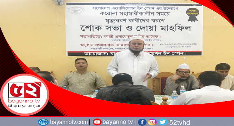 করোনাভাইরাস সংক্রমণ থেকে বাংলাদেশসহ সারাবিশ্বতে দ্রুত মুক্তি দেয়ার জন্য বিশেষভাবে আল্লাহর কাছে ফরিয়াদ জানানো হয়। এতে সভাপতিত্ব করেন বাংলাদেশ এসোসিয়েশন ইন স্পেনের সভাপতি কাজী এনায়েতুল করিম তারেক। এসোসিয়েশনের সাধারণ সম্পাদক কামরুজ্জামান সুন্দরের সঞ্চালনায় যথানিয়মে সামাজিক দূরত্ব বজায় রেখে স্বাস্থ্যবিধি মেনে প্রবাসী বাংলাদেশীরা শোক সভা ও দোয়ায় অংশ নেন।
